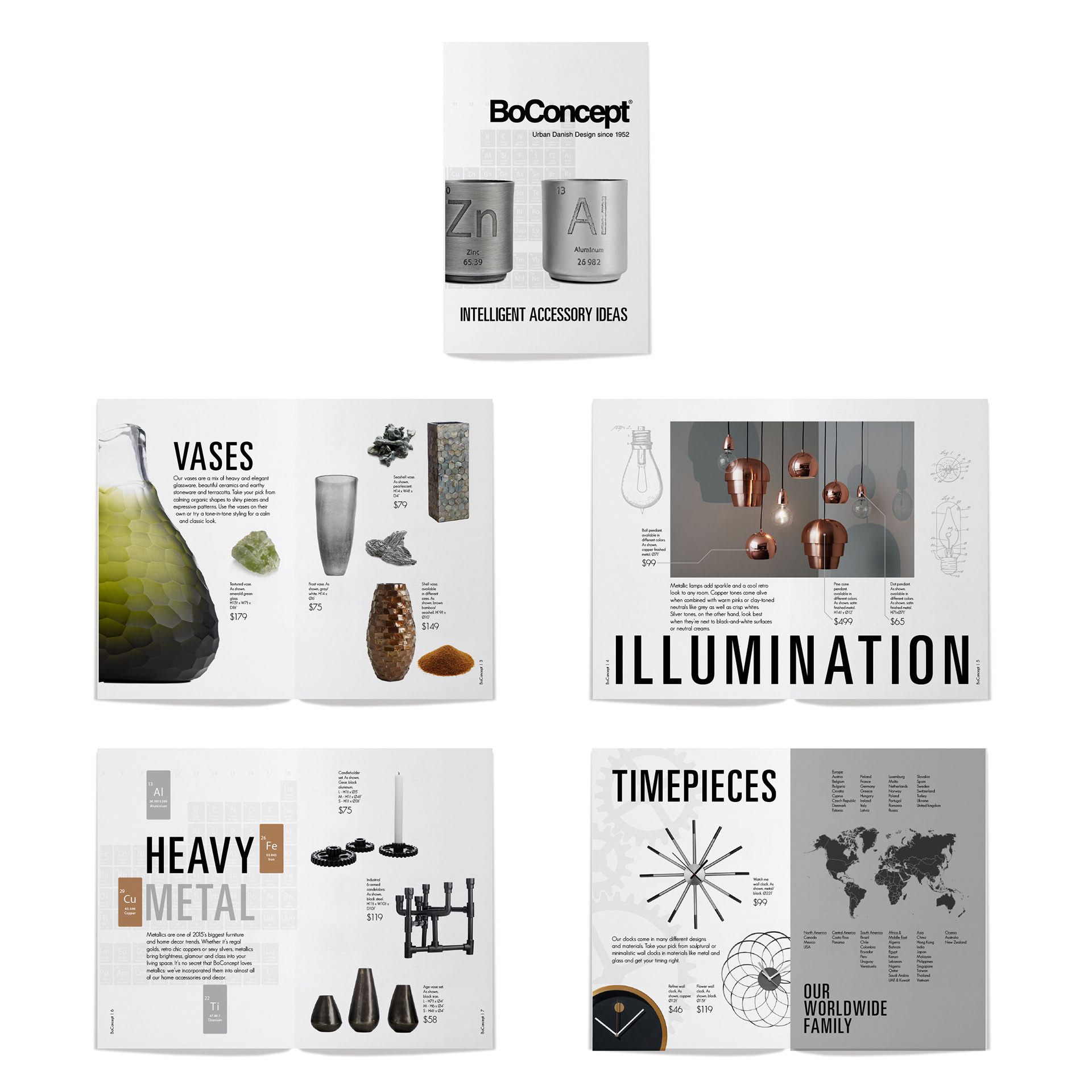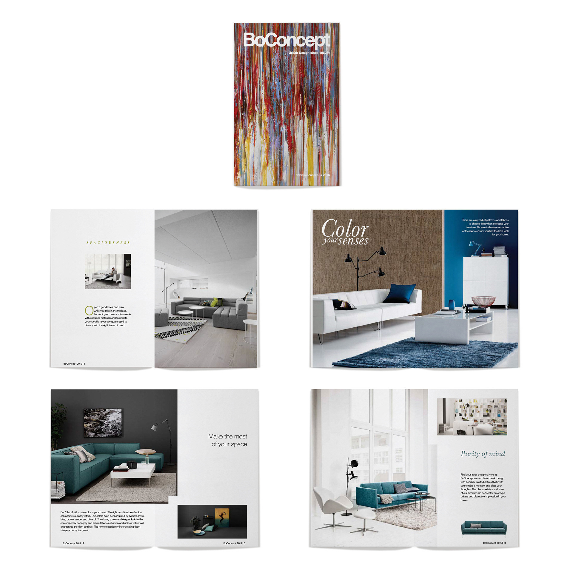 These brochures were created with unique concepts reflecting the brand identity and visual aesthetic used by BoConcept.