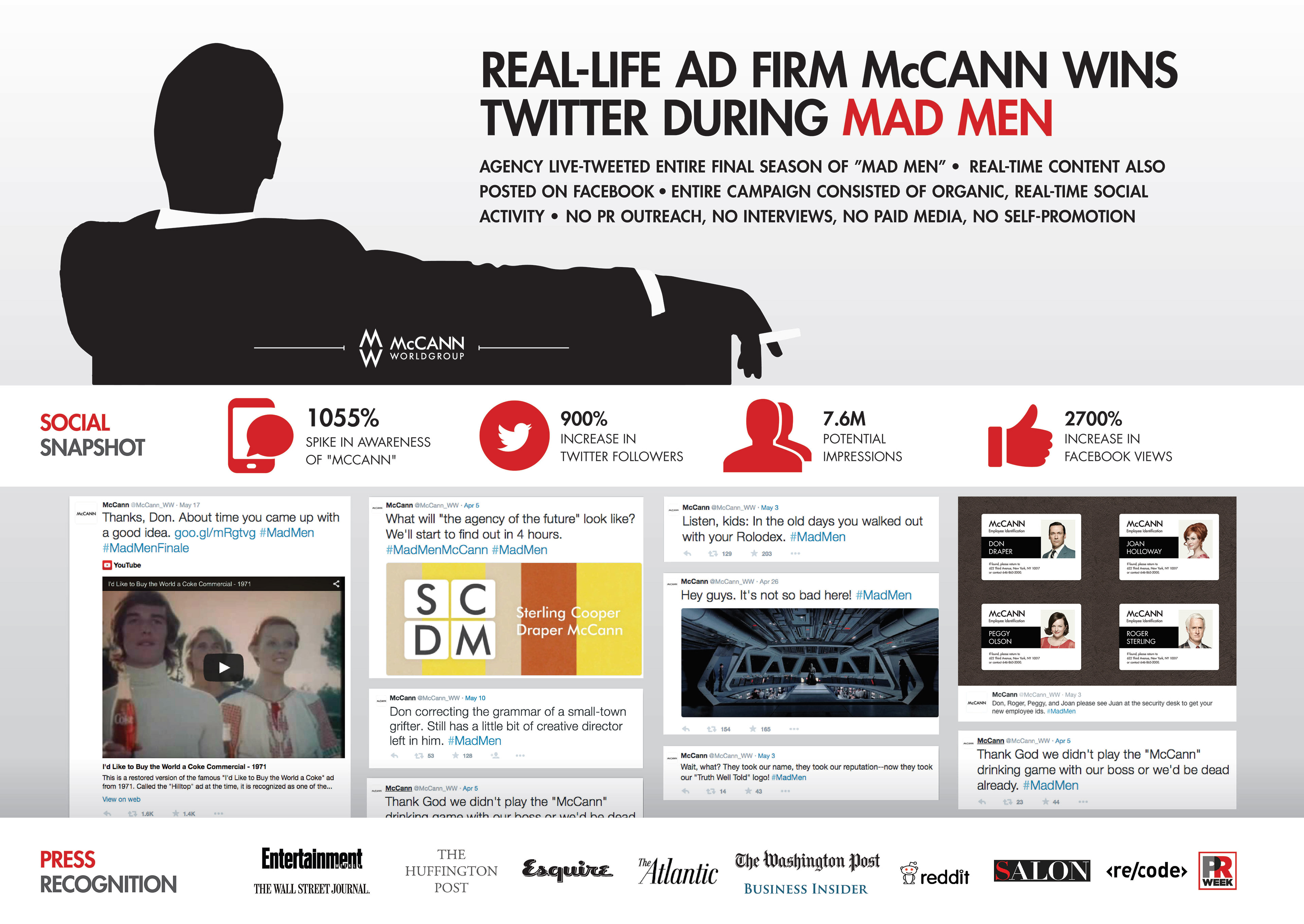 I designed this poster during my internship at McCann. The poster highlights McCann's social media accomplishments alongside the hit television show "Mad Men." On the show McCann plays the role of the main rival advertising agency.
